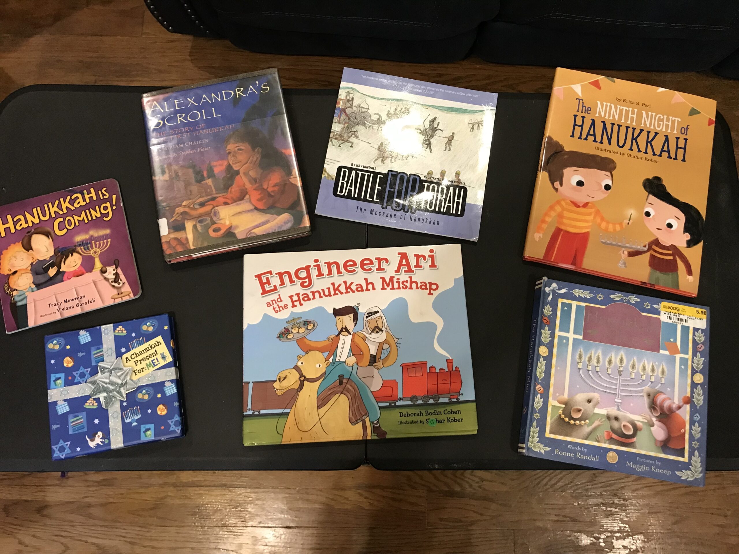 I haven’t done any book round-ups since I lost everything on the blog and had to start from scratch, but I want to start doing them again, and when I found these pictures and pulled out our Hanukkah box this year, this seemed like a good time to do my first one.